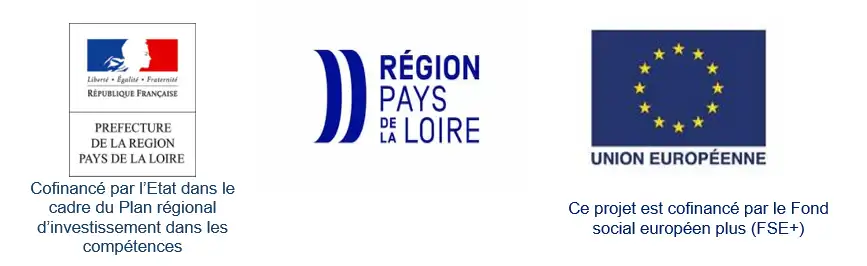 Ces formations sont cofinancées par la Région Pays de la Loire, l’État (Pacte régional d’investissement dans les compétences Pays de la Loire) et l’Union européenne (FSE+).